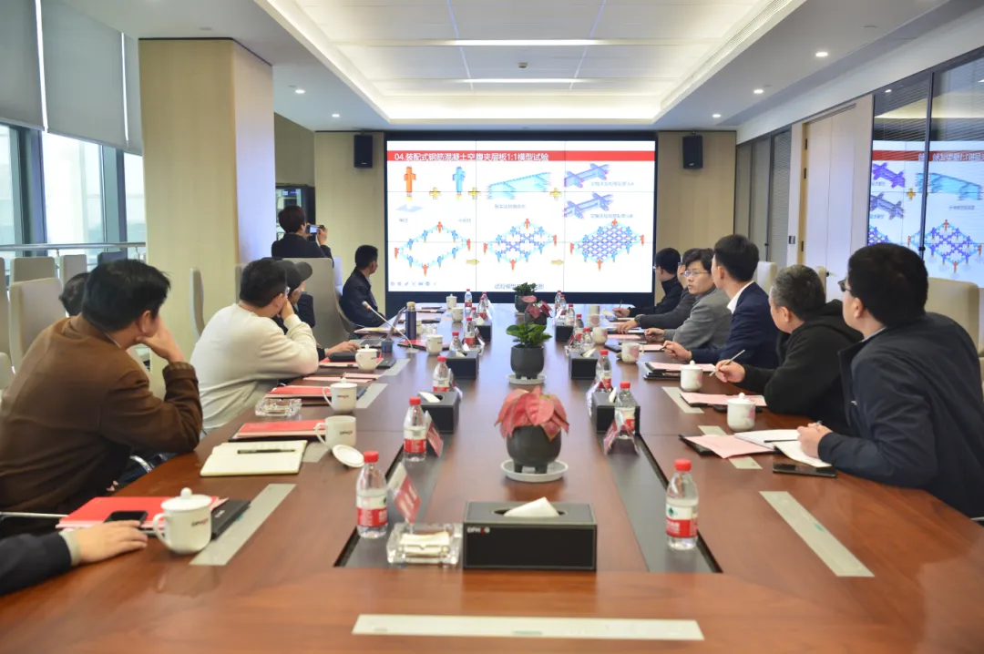 會(huì)議中,馬克儉院士就其主導(dǎo)研發(fā)的空腹夾層板技術(shù)親自進(jìn)行講解,并提出大柱網(wǎng)大跨度工業(yè)與公共建筑上樓是節(jié)約土地促進(jìn)生態(tài)文明建設(shè)發(fā)展的重大舉措。結(jié)合試驗(yàn)及實(shí)踐案例分析證明,裝配式鋼筋混凝土空腹夾層板體系可以有效解決“高層大跨”、“工業(yè)上樓”類項(xiàng)目的諸多難點(diǎn)問(wèn)題,將有非常大的市場(chǎng)應(yīng)用前景。(馬克儉院士90多歲高齡,仍每天堅(jiān)持“朝九晚五”地投入到技術(shù)研發(fā)工作中,讓大家深感敬佩和鼓舞。)會(huì)議中雙方還就學(xué)術(shù)及技術(shù)合作事宜進(jìn)行了深入交流。