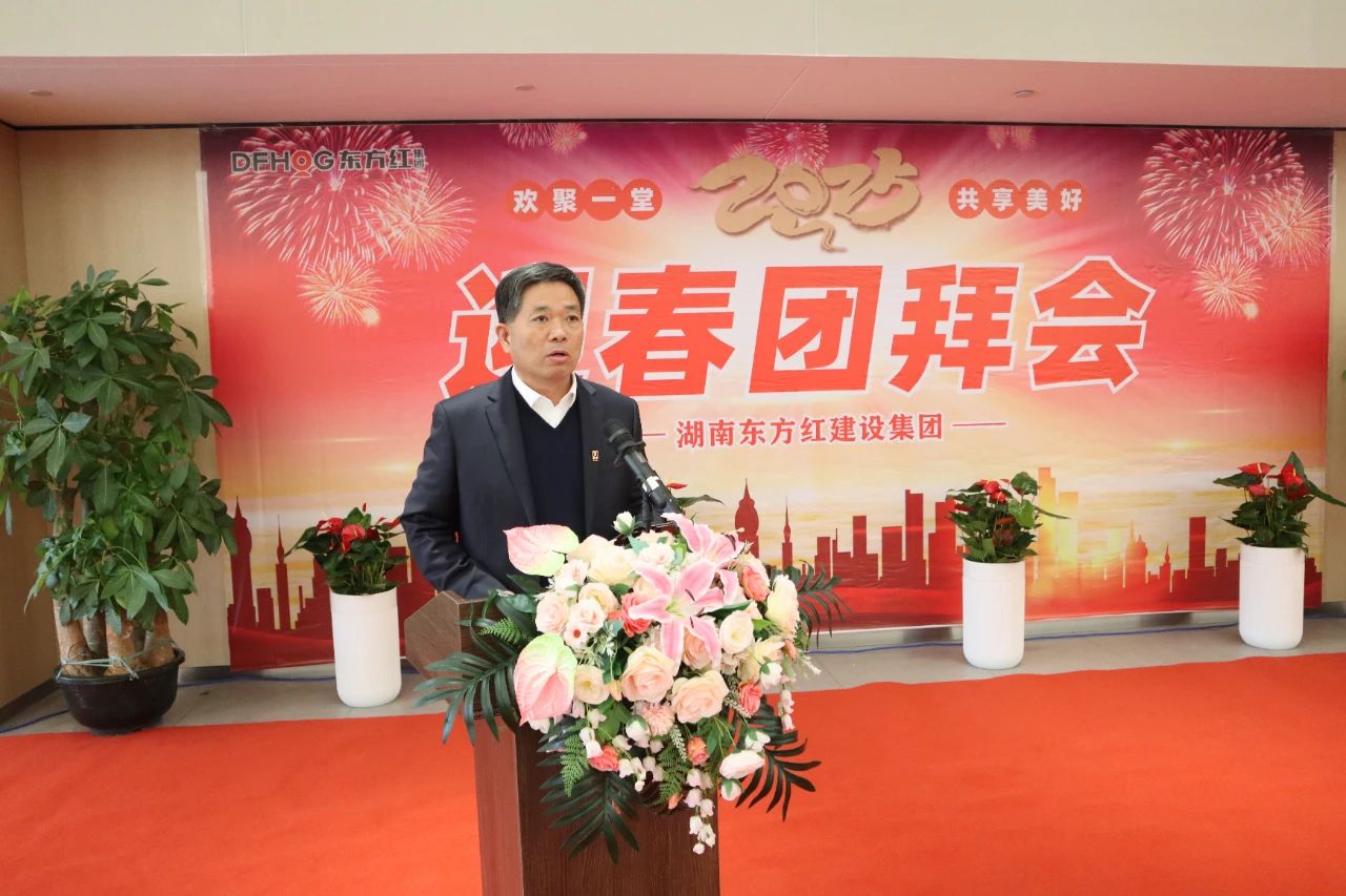 日月更迭,歲序常新。值此辭舊迎新的美好時刻,1月21日,湖南東方紅集團舉辦了2025年迎春團拜會。集團董事長雷希文、總經(jīng)理雷迅、黨委書記陳偉、建筑公司總經(jīng)理鄭智洪及集團黨委成員與全體員工歡聚一堂。團拜會由集團黨委書記、副總經(jīng)理陳偉主持。