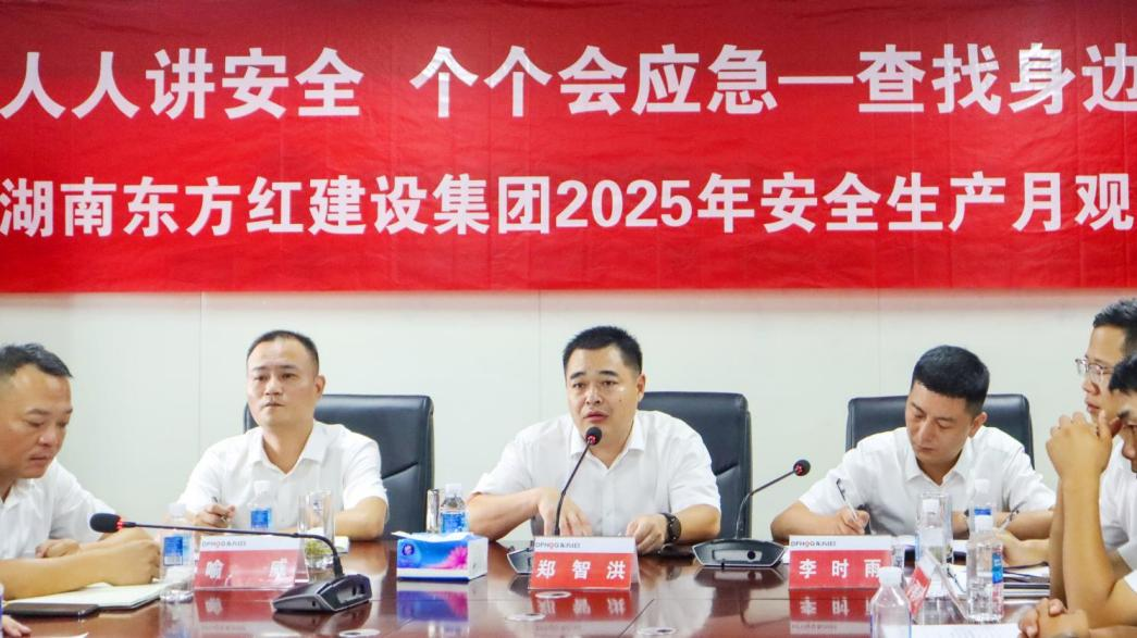 6月27日,湖南東方紅建設集團在大王山南片保障性住房三期(西地塊)項目部隆重舉行2025年安全生產(chǎn)月觀摩交流會議,建筑公司總經(jīng)理鄭智洪、常務副總經(jīng)理李時雨等領導以及公司項目負責人、關鍵崗位人員參加了本次活動,活動由建筑公司常務副總經(jīng)理李時雨主持。