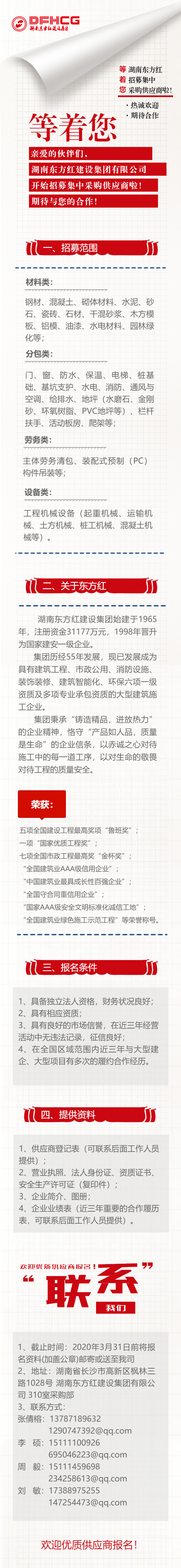 等著您!湖南東方紅招募集中采購供應商啦!