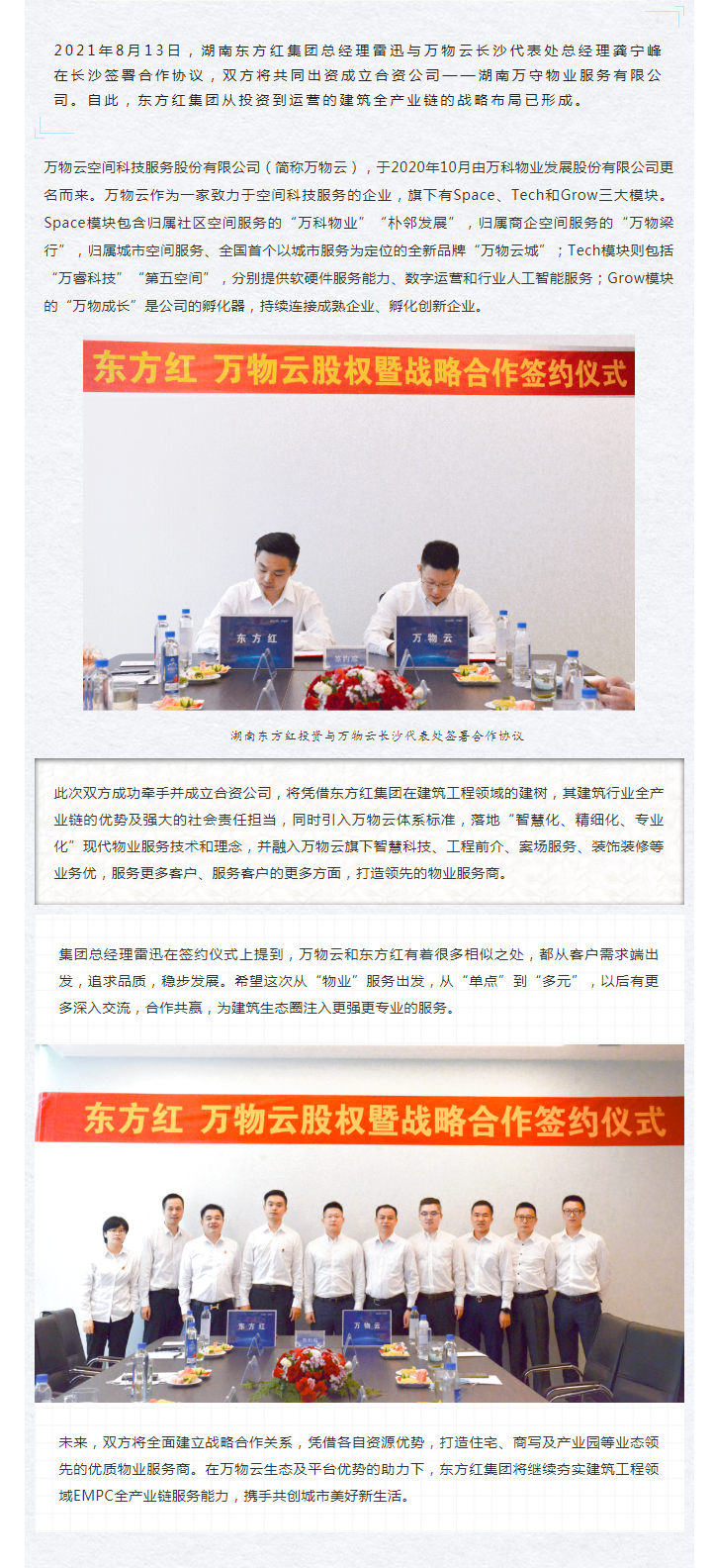 湖南東方紅集團(tuán)與萬物云達(dá)成戰(zhàn)略合作