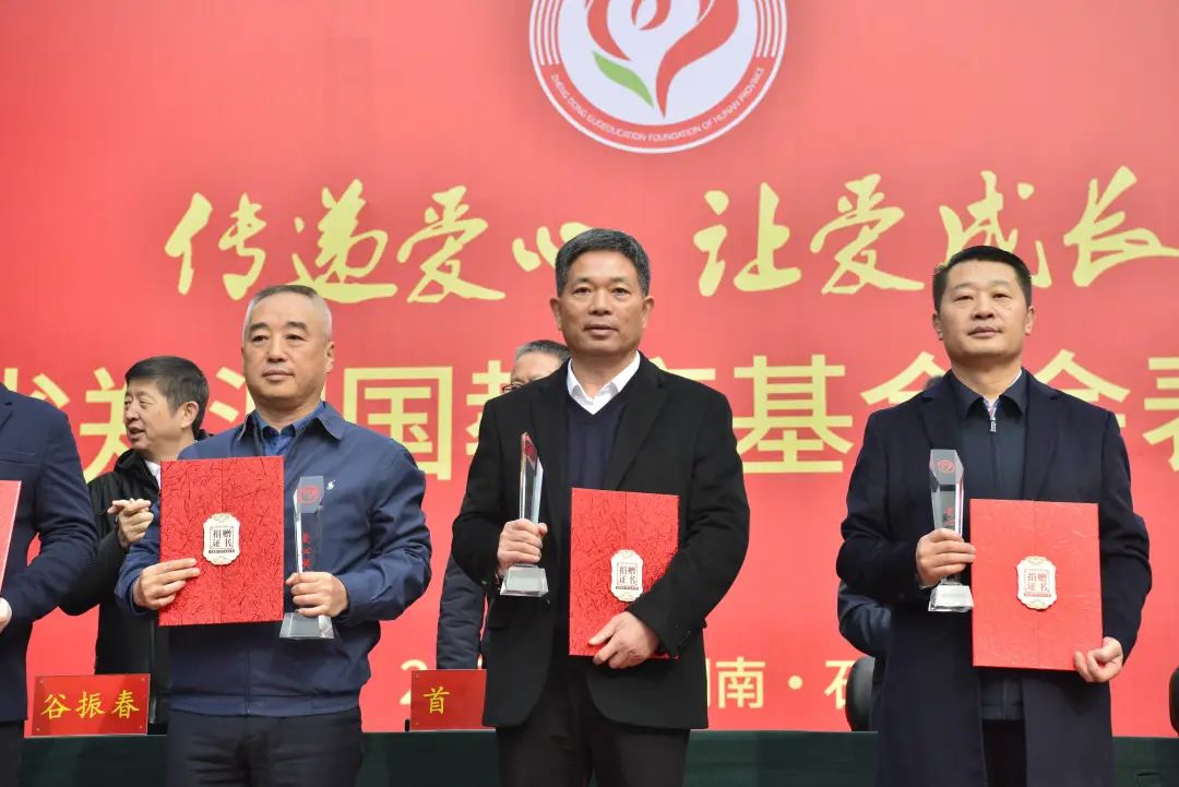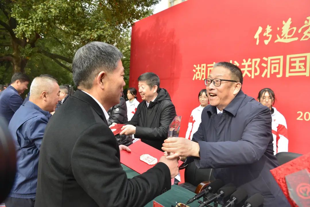 會上,鄭建邦勉勵師生要感恩時代,樹立家國情懷,向老前輩學(xué)習(xí),明確目標(biāo),開拓眼界,腳踏實地,成長為對國家有用的人;要珍惜時代,擔(dān)負使命,在擔(dān)當(dāng)中歷練,在盡責(zé)中成長,樹雄心、立大志,為全面開啟現(xiàn)代化新征程貢獻智慧和力量。同時,鄭建邦向社會各界愛心人士對基金會的大力支持表示感謝,并為東方紅集團董事長雷希文頒發(fā)愛心獎?wù)隆?/span>